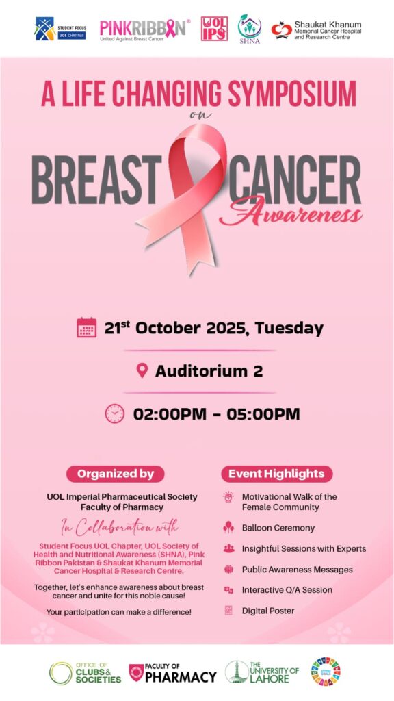 Events Events and Conferences Events by Cancer Society Multan Breast Cancer Awareness Lecture and Walk at Emerson University Multan on Monday, 27th October 2025. Meeting of the Cancer Society Multan on Friday, 7th November 2025, at the residence of the President. Breast Cancer Awareness Lecture and Walk at University of Lahore on Tuesday, 21st October 2025